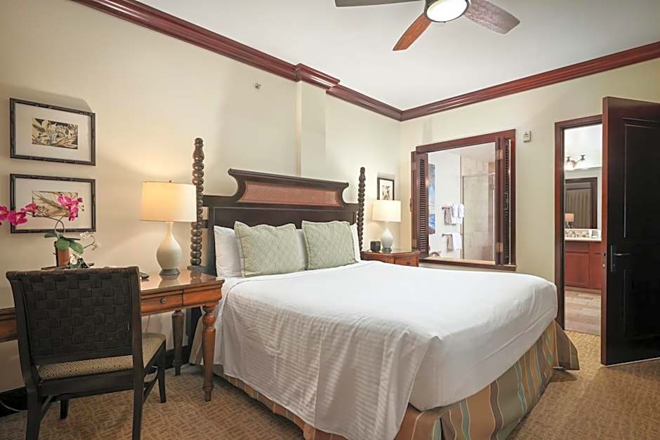 This inviting two-bedroom condo overlooks beautifully maintained gardens, creating a calming setting for your Kauai getaway. Perfect for a family to enjoy the nearby beaches and attractions • Kitchen features granite countertops, Wolf cooktop and convection oven, microwave, dishwasher, full-size Sub-Zero refrigerator, coffeemaker, blender, toaster, cookware, and tableware • Welcome essentials kit includes coffee, sugar, creamer, paper towels, sponge, dishwasher detergent • Master bedroom with 1 king bed • Guest bedroom with 1 queen bed or 2 double beds or 1 double bed • Master and guest bathroom with large soaking tub and free-standing shower • Third guest bathroom with shower • Bath amenities include shampoo/conditioner, soap, lotion & hair dryer • Living area with queen sofa bed • Dining area • Air conditioning and ceiling fan • Blackout drapes • Washer/dryer in unit • Balcony or patio with furniture • TV with standard cable • Wi-Fi • In-room safe • Iron and board • Smoke detectors and Fire sprinklers • Crib available upon request • Children 17 years and under are free when sharing room with parent(s) utilizing existing beds Each unit has its own unique décor and furniture